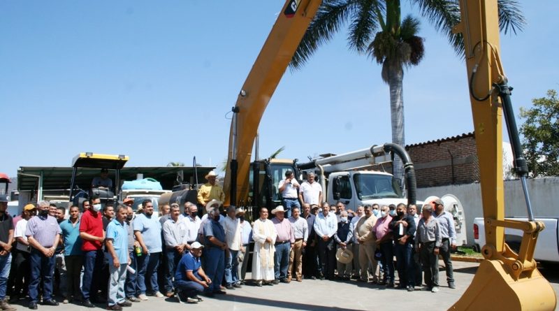 Un vibrador, un tractor agrícola con equipo de aspersión, y una retroexcavadora, fueron entregadas por el dirigente a la Asociación de Usuarios de La Unidad de Riego que beneficiará a productores de caña, principalmente, de los municipios de El Grullo, Autlán y El Limón.