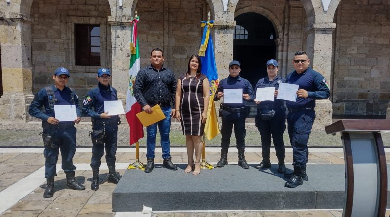 El pasado fin de semana, los cinco elementos policiacos junto con el Comisario y la Síndico Municipal, Misael Carbajal y Patricia Hernández, respectivamente, acudieron a la ceremonia de graduación y entrega de constancias en el Hospicio Cabañas, de la ciudad de Guadalajara.