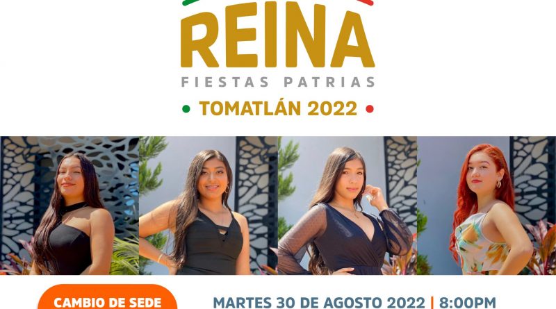 Cabe mencionar que el certamen “Reina Fiestas Patrias Tomatlán 2022” que originalmente se realizará desde la plaza principal de Tomatlán, Jalisco, cambia de sede, ahora se realizará en el salón de usos múltiples “Abel Salgado” por ante el riesgo de lluvia, según los pronósticos del tiempo.