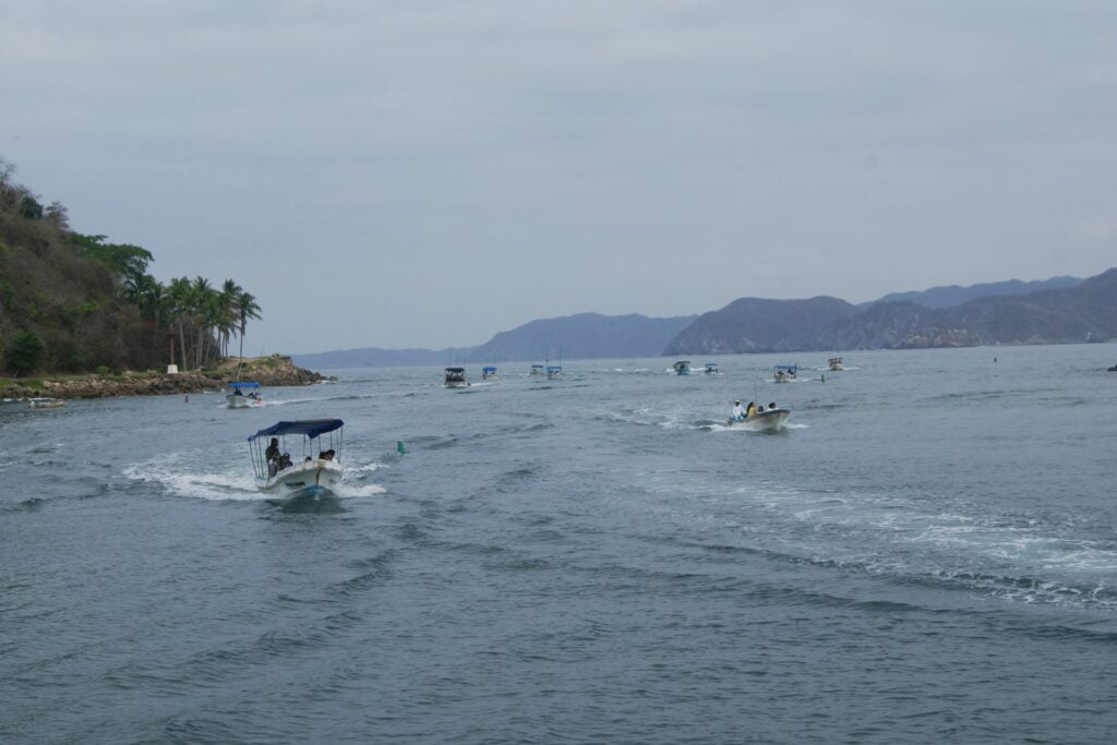 A su regreso, las autoridades federales y municipales, así como instituciones educativas e invitados especiales se adentraron a la Laguna de Barra de Navidad, donde el señor Javier Ramos Granados lanzó una ofrenda floral en memoria de “Gero” pescador que perdiera la vida en un trágico accidente y donde queda el recuerdo de su embarcación hundida.