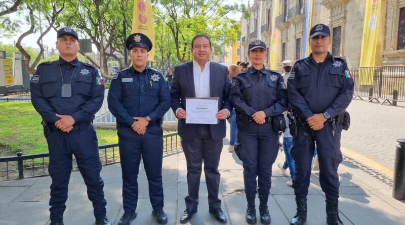 El alcalde, Gustavo Robles acompaño a los elementos policiacos a la ciudad de Guadalajara al evento protocolario de la entrega de constancias del curso de capacitación denominado “Aspectos Técnicos de Control de Detención”.
