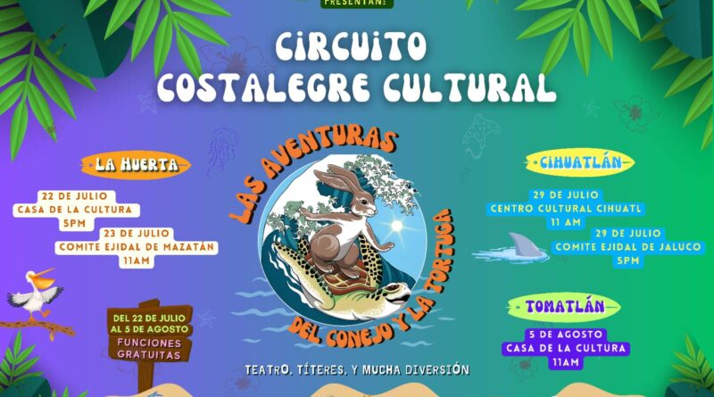 LA HUERTA, Jalisco. [ABC Medios]- el 22 y 23 de julio próximo en La Huerta y Mazatán se podrá disfrutar de la puesta en escena de “Las Aventuras del Conejo y La Tortuga.”