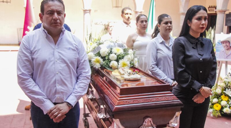 Desde el patio central de Palacio Municipal, Regidores, Directores y Funcionarios municipales, rindieron un homenaje de cuerpo presente a quien fuera el Agente Municipal de El Jalocote, una de las 9 víctimas mortales a consecuencia de la tromba que se registró en esta zona del Jalocote-La Lima, la madrugada del lunes.