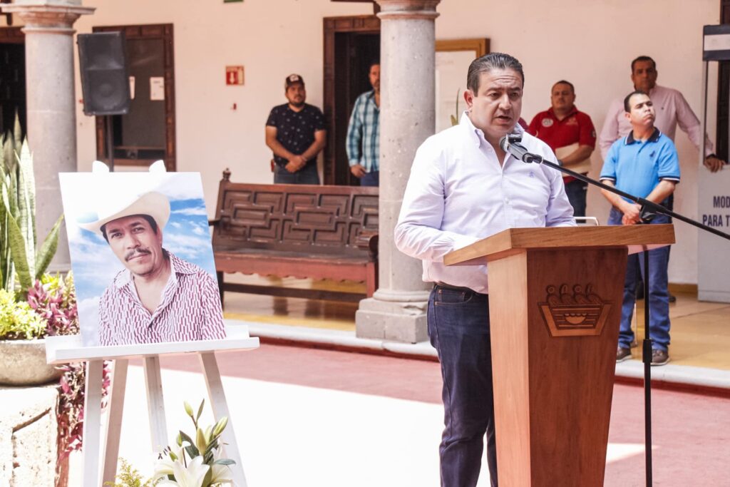 AUTLÁN, Jalisco. [ABC Medios]- El Gobierno Municipal de Autlán, realizó un homenaje de cuerpo presente en memoria del agente municipal Pedro Arias Llamas en el patio central de Presidencia.
