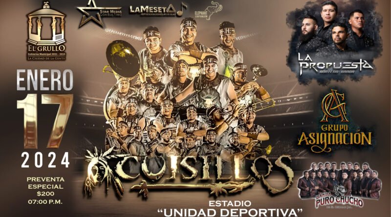 La Agrupación musical, Cuisillos, estará presente el 17 de enero en un evento masivo que se realizará en La Unidad Deportiva de El Grullo, alternarán La Propuesta, Norteño Banda, Grupo Asignación y Puro Chucho.