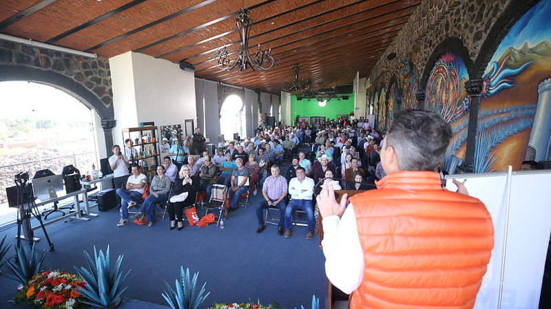 El Precandidato mencionó a las y a los simpatizantes naranjas que Jalisco es el líder indiscutible en la producción mundial de tequila, al aportar el 74.3 por ciento del total; por ello, dijo, es importante escuchar a los expertos para llevarse las propuestas que permitan mejorar esta importante industria.