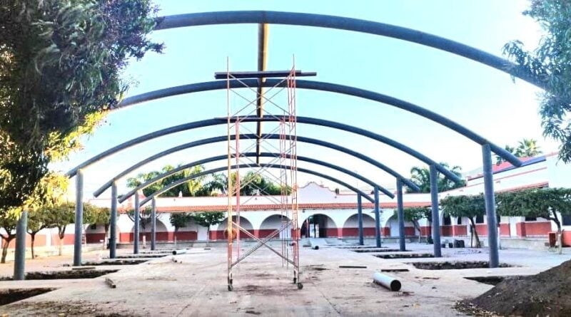 “un ejemplo de este esfuerzo que realizamos, es el nuevo domo-lonaria en nuestra Primaria Manuel Ávila Camacho. ¡Una obra histórica!”