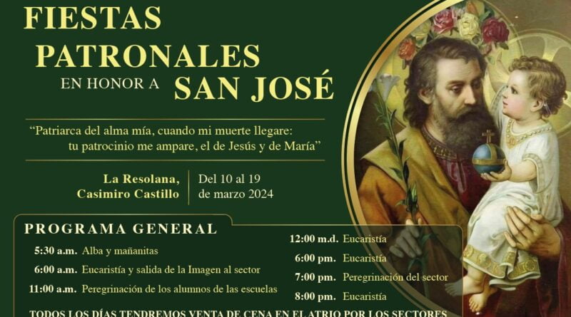 Será del 10 al q9 de marzo, cuando la Parroquia del Señor San José de Casimiro Castillo realice diferentes festividades para celebrar a su santo patrono.