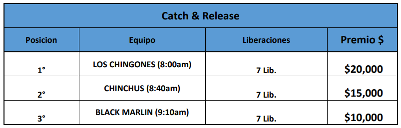 Destaco la respuesta de los pescadores, para atender las recomendaciones de la modalidad “Pesca y Libera” que aplica el Club para el Pez Vela y Marlin Rayado “que tiene la finalidad de preservar la especie en las aguas de la zona.”