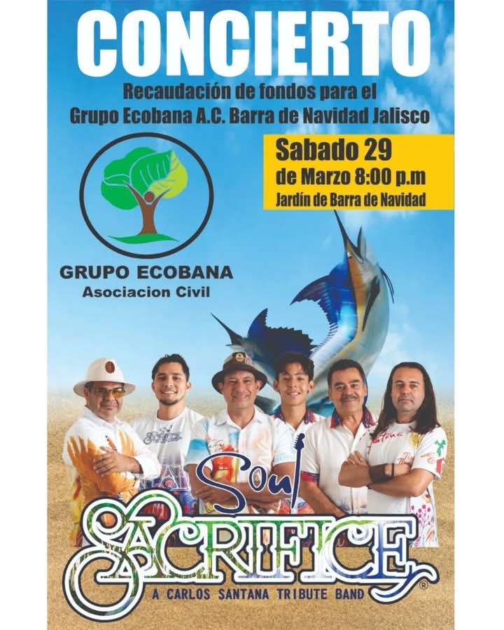 Sidronio Madero, presidente de ECOBANA AC hace pública la invitación a toda la población y comunidad extranjera, este próximo sábado a la presentación del Grupo Soul Sacrifice Tributo a Santana en el Jardín de Barra de Navidad a partir de las seis de la tarde.