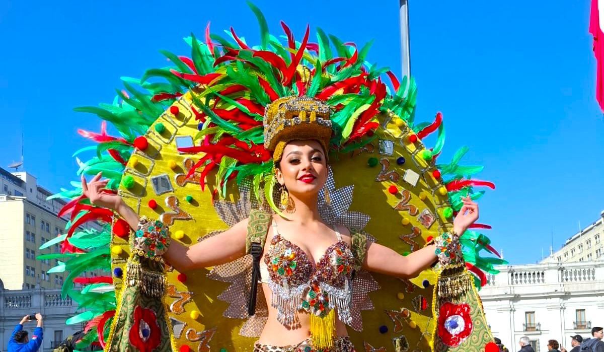 En la 12 Edición del Festival Internacional del Sol, que se celebra en Santiago de Chile el público ha quedado maravillado con la participación de una mexicana, Nubia Jazmín Peña Aréchiga, quien es la candidata a reina del Grupo Folclórico Colibrí, de Unión de Tula.