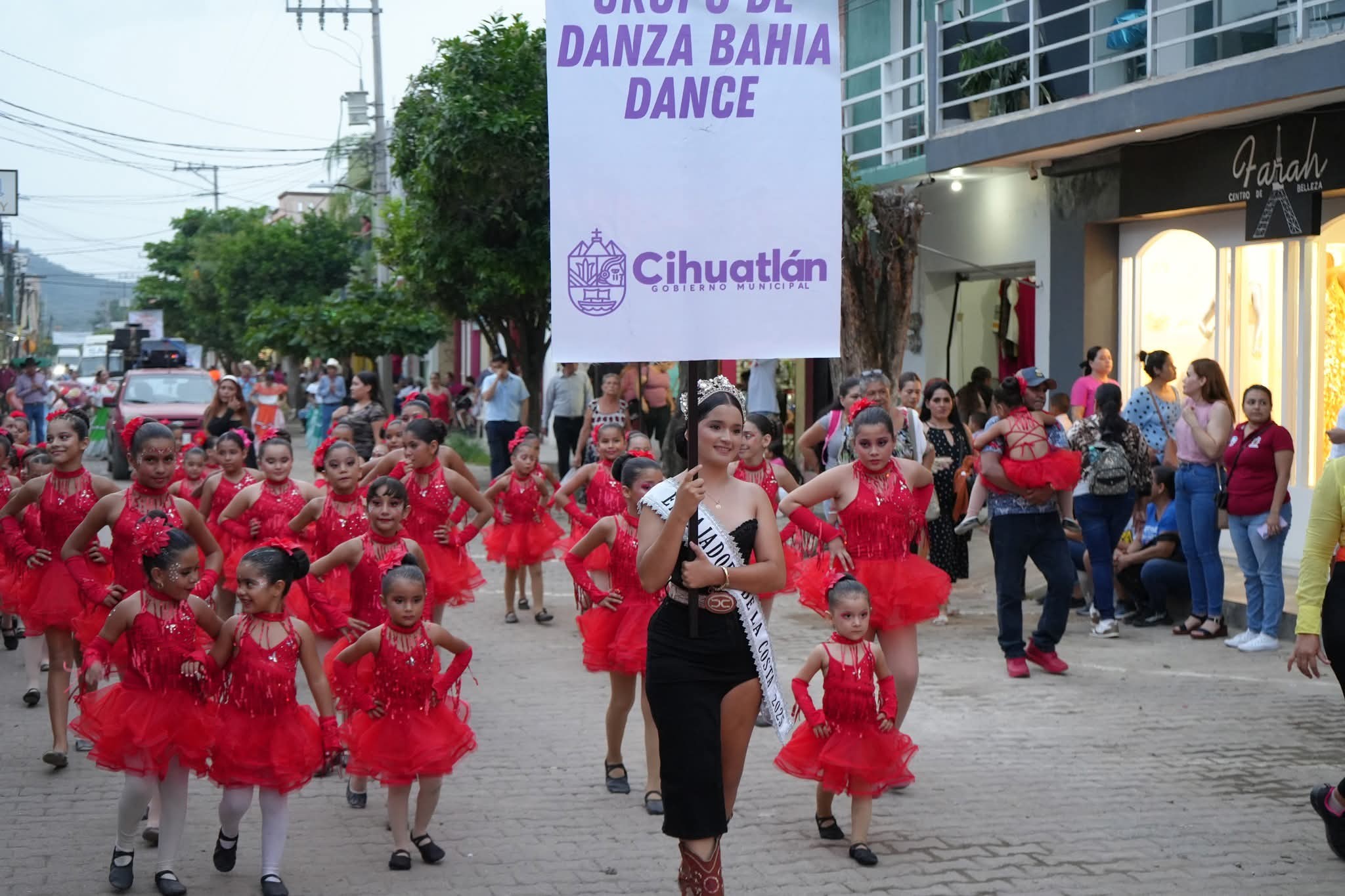 En el marco de los festejos del Día de Las Paseadoras La Huerta 2025, el municipio de Cihuatlán se hizo presente en el desfile cultural con la Embajadora Costalegre y la participación del Ballet Bahía Dance.